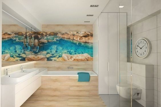 Ванная комната – это такая же важная часть жилища, как гостиная или спальня. Вот почему необходимо уделить достаточно внимания дизайну интерьера ванной. При выборе отделочных материалов многие останавливают свой выбор на плитке, хотя, например, фотообои будут смотреться в этом помещении не хуже, а даже лучше кафеля.