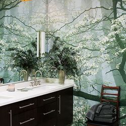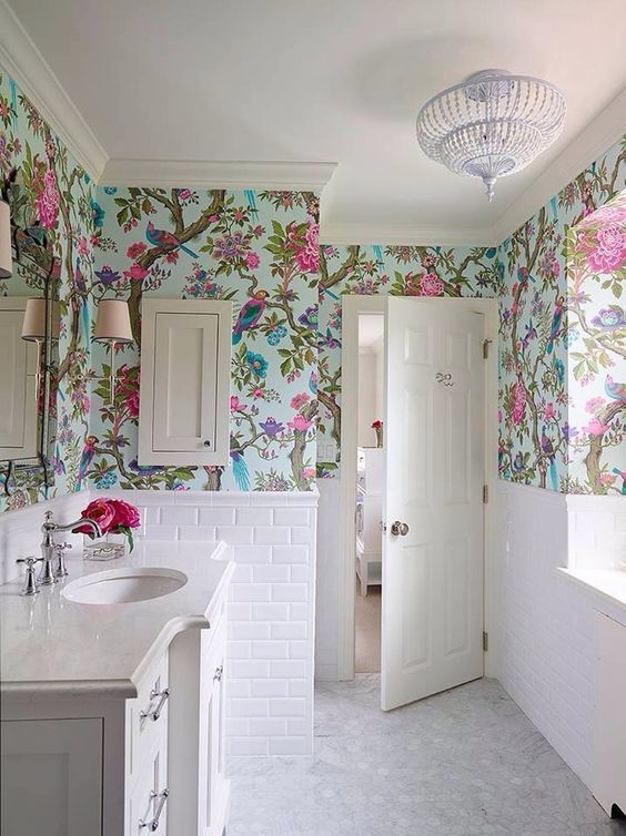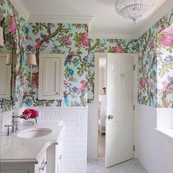 Преимущества отделки ванной обоями
